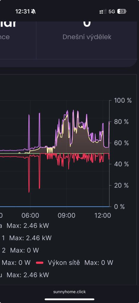 Takto nastavený vytěžovač bude velmi přesně kopírovat přebytky vaší elektrárny a tato konfigurace dokáže velmi dobře nahradit drahá zařízení typu Wattrouter apod. Podívejte se na příklad grafu vytěžování. Všimněte si, jak křivka spotřeby krásně kopíruje křivku výroby.